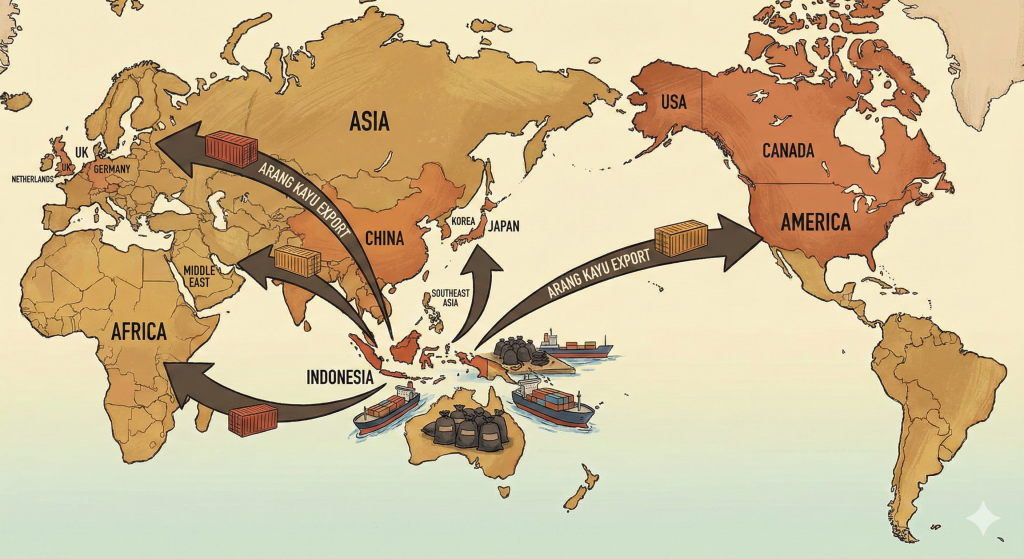 Peringkat Global: Berdasarkan data dari Trade Map (International Trade Centre), Indonesia secara konsisten menempati peringkat Top 3 Eksportir Arang Dunia (HS Code 4402), bersaing ketat dengan China dan Polandia.
